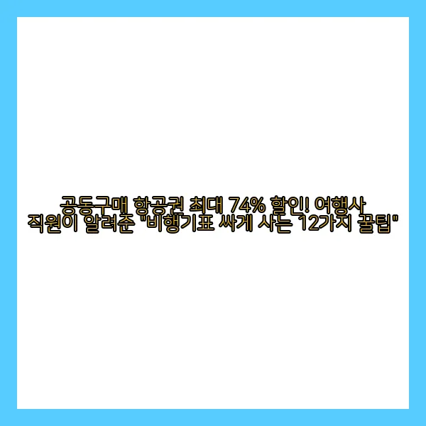 이 외에도 공동구매 항공권은 최대 74%까지 할인받을 수 있는 아주 좋은 방법입니다. 여행사와 계약된 단체 좌석을 저렴하게 판매하는 것으로, 원하는 여행지의 항공권을 저렴하게 구매할 수 있습니다. 다만 출발/도착일 등 일정이 정해져 있어 자유로운 여행 계획이 어려울 수 있습니다.