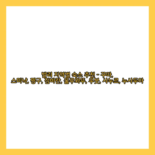 발리 지역별 숙소 추천 - 꾸따, 스미냑, 짱구, 짐바란, 울루와뚜, 우붓, 사누르, 누사두아
