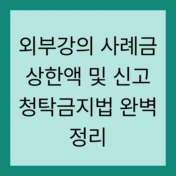부정청탁과 금품 수수 는 사회의 공정성과 투명성을 흔드는 심각한 문제입니다. 특히 외부강의를 둘러싼 금전 거래는 부패의 온상이 될 수 있다는 우려의 목소리가 높죠. 이에 따라 청탁금지법은 외부강의 사례금에 대한 엄격한 기준을 마련 했습니다. 이 글에서는 2025년 기준으로 외부강의 사례금 상한액, 신고 절차, 위반 시 제재 등 핵심 정보를 꼼꼼하게 정리하여 여러분의 궁금증을 속 시원하게 해결해 드리겠습니다! 더 이상 헷갈리지 마세요! 청탁금지법, 이제 완벽하게 마스터할 수 있습니다!