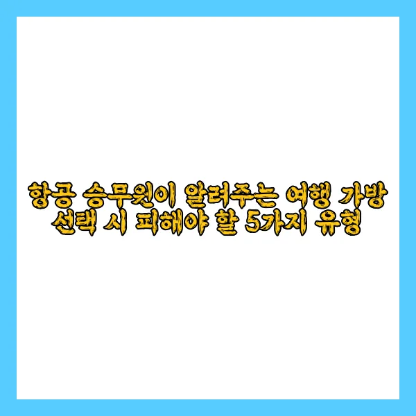 여행을 계획하고 계신 분들, 그리고 베테랑 여행자 여러분! 오늘은 현직 항공 승무원이 직접 알려주는 여행 가방 선택 시 반드시 피해야 할 5가지 유형에 대해 소개해 드리겠습니다. 여행의 필수품인 여행 가방은 성공적인 여행을 좌우하는 중요한 요소 중 하나이기 때문에 숙지해두시면 큰 도움이 될 것입니다.